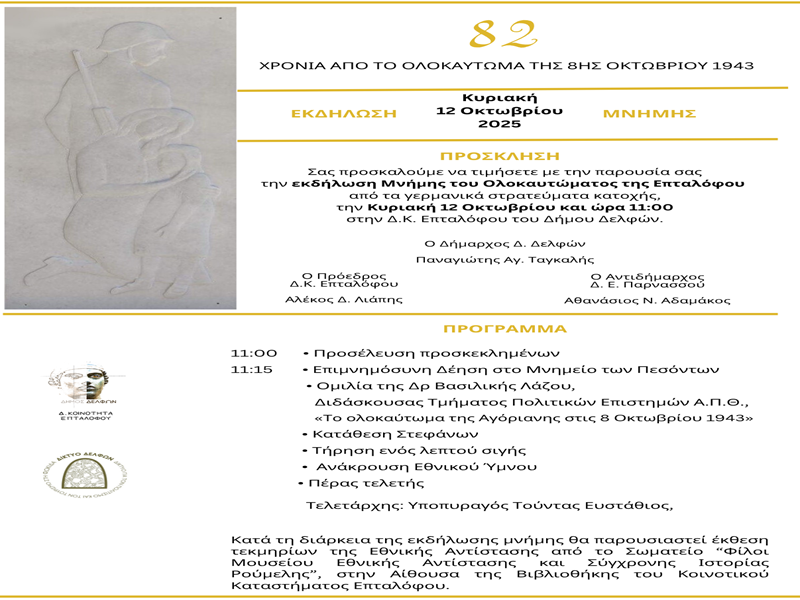 Την Κυριακή 12 Οκτωβρίου η εκδήλωση μνήμης για το Ολοκαύτωμα της Επταλόφου…