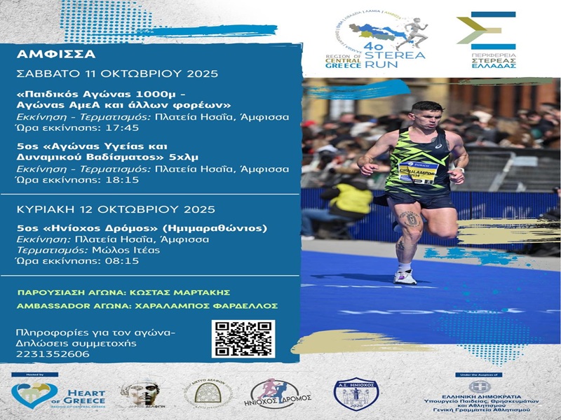 Το Σαββατοκύριακο 11 και 12 Οκτωβρίου 2025 το 4ο StereaRun - 5ος…