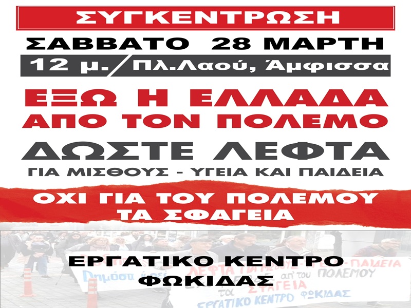 ΣΥΓΚΕΝΤΡΩΣΗ ΣΑΒΒΑΤΟ 28 ΜΑΡΤΗ