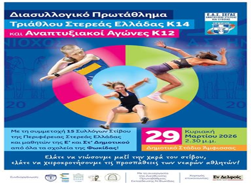 Διασυλλογικό Πρωτάθλημα Τριάθλου Κ14 και Αναπτυξιακοί Αγώνες Κ12 στο Δημοτικό Στάδιο Άμφισσας…